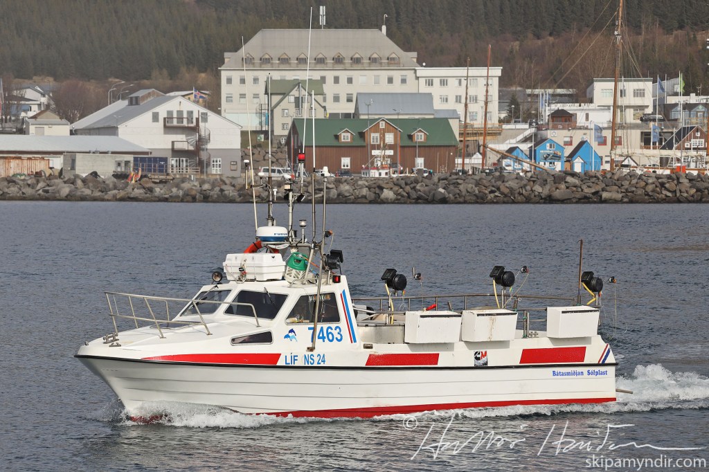 Sómabáturinn Líf NS 24 er hér á siglingu í Húsavíkurhöfn í dag en báturinn er gerður út af Hafskip slf. og skráður með heimahöfn á Bakkafirði.