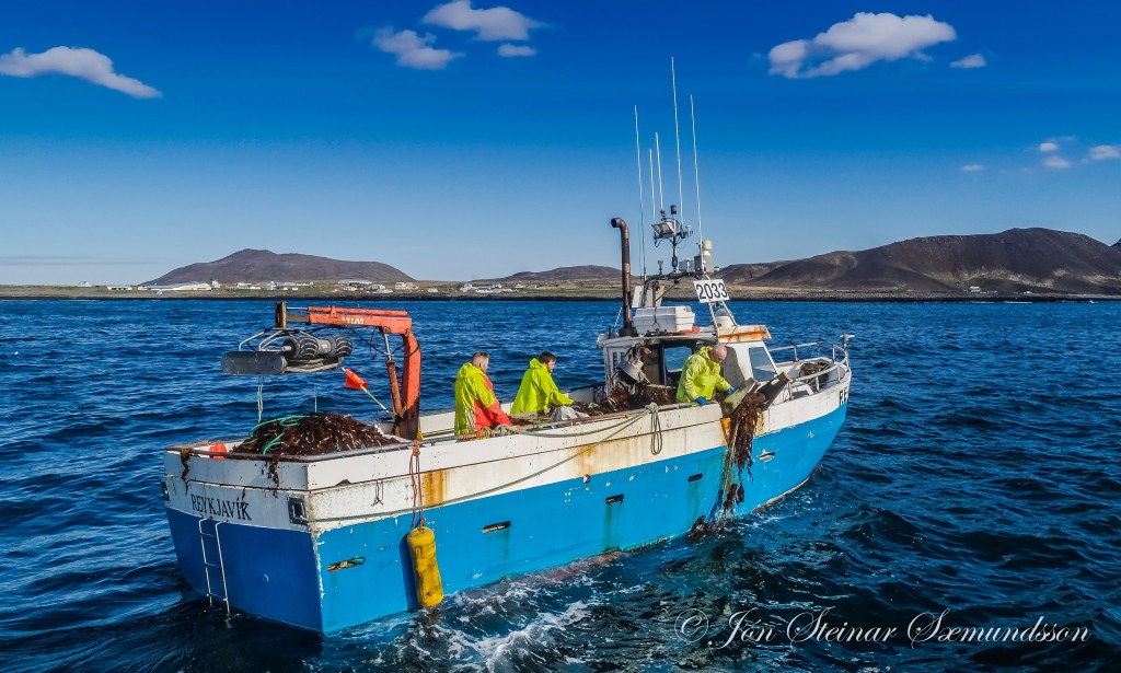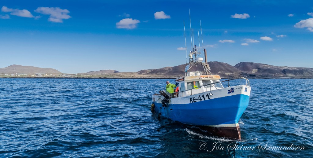 Jón Steinar tók þessar myndir af grásleppubátnum Jóni Pétri RE 411 í gær þar sem hann var að draga netin á Hraunsvíkinni.
