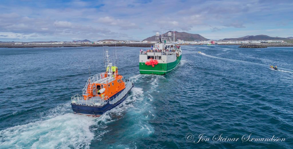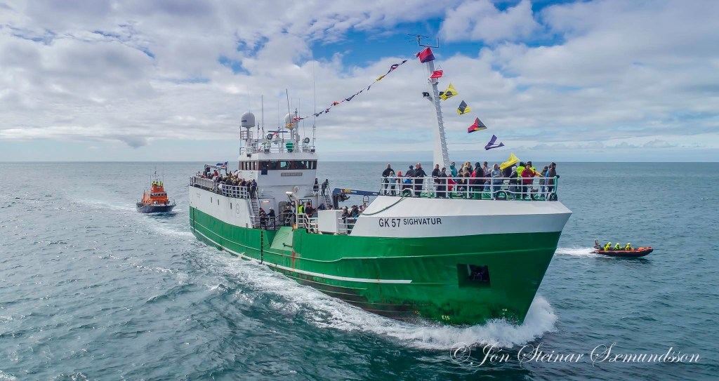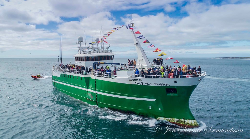 Páll Jónsson GK 7 og Sighvatur GK 57 buðu fólk í skemmtisiglingu og fóru þau til móts við Óðinn.