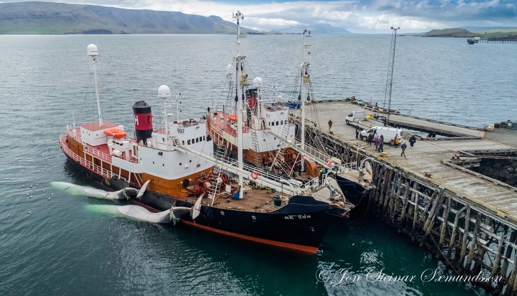 Jón Steinar tók þessar flottu myndir af Hval 9 RE 399 í gær en þá kom hann með tvær langreyðar til Hvalstöðvarinnar við Miðsand í Hvalfirði.