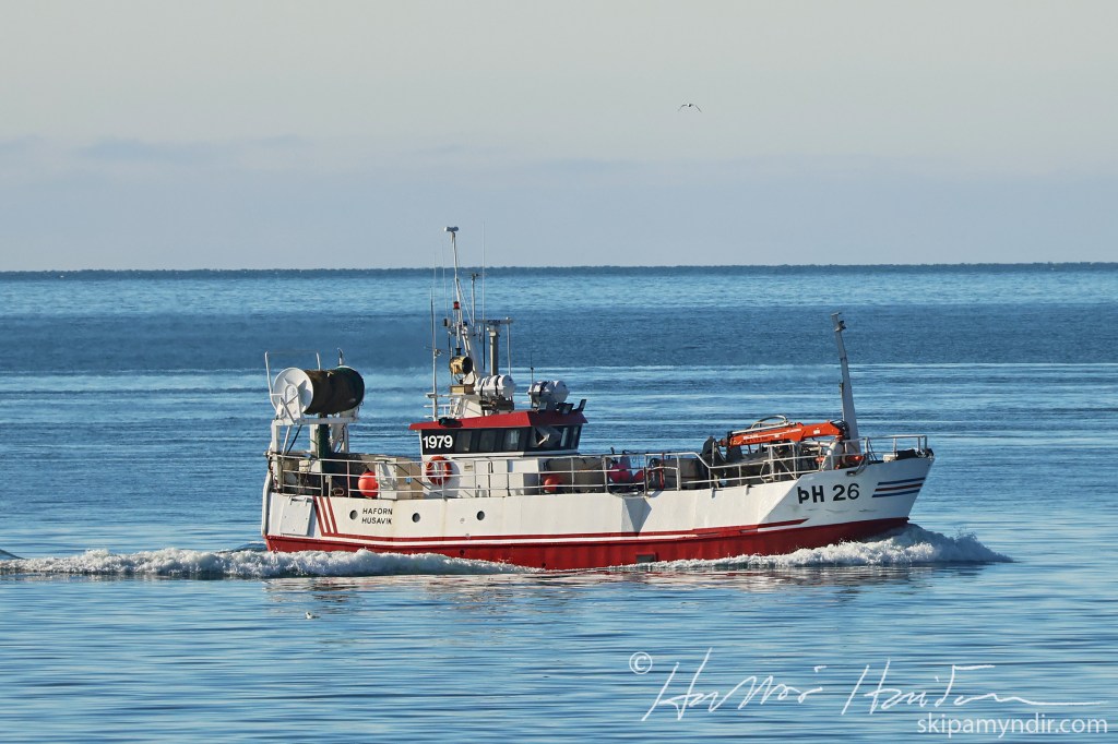 Þessi mynd var tekin þegar dragnótabáturinn Haförn ÞH 26 kom til hafnar á Húsavík í dag.