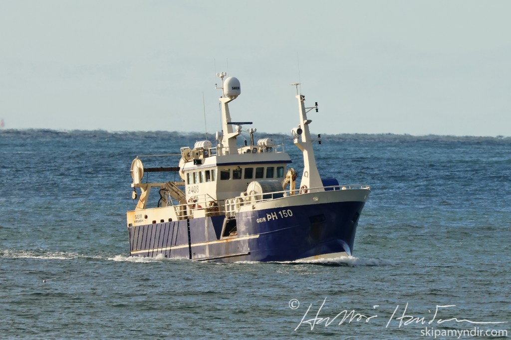Dragnótabáturinn Geir frá Þórshöfn hefur verið við veiðar á Skjálfanda að undanförnu og hér sést hann á leið til hafnar á Húsavík í dag.