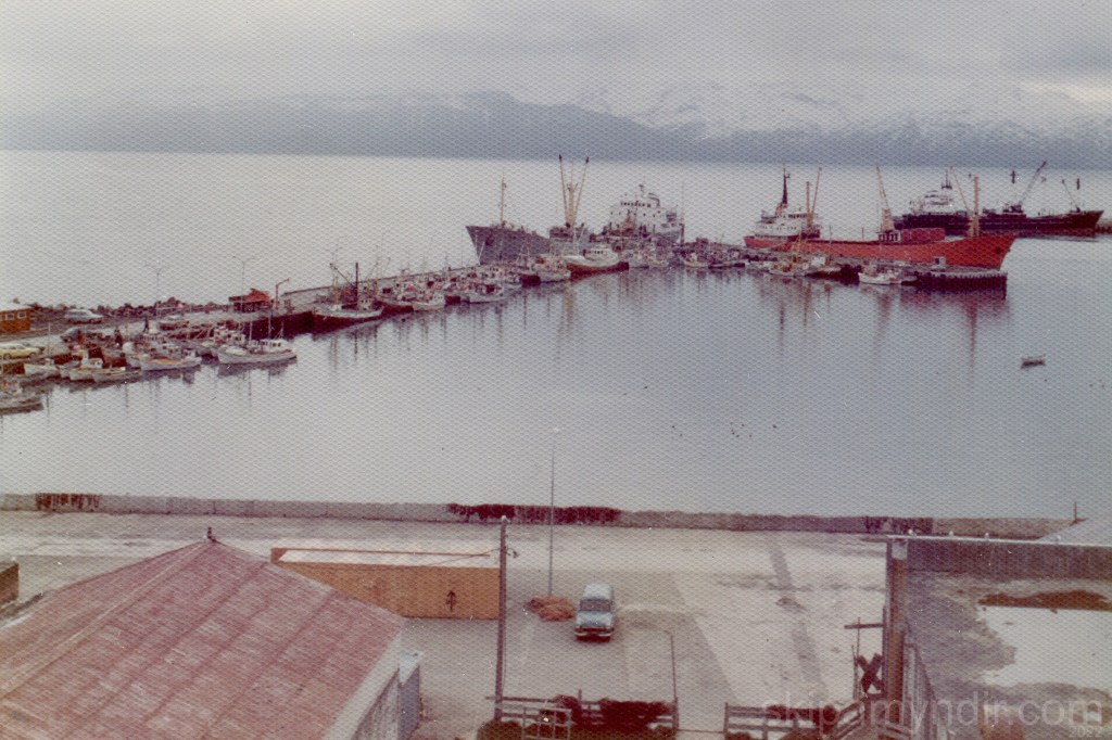 Hér gefur að líta mynd af Húsavíkurhöfn, tekna á seinni hluta áttunda áratugs síðustu aldar.