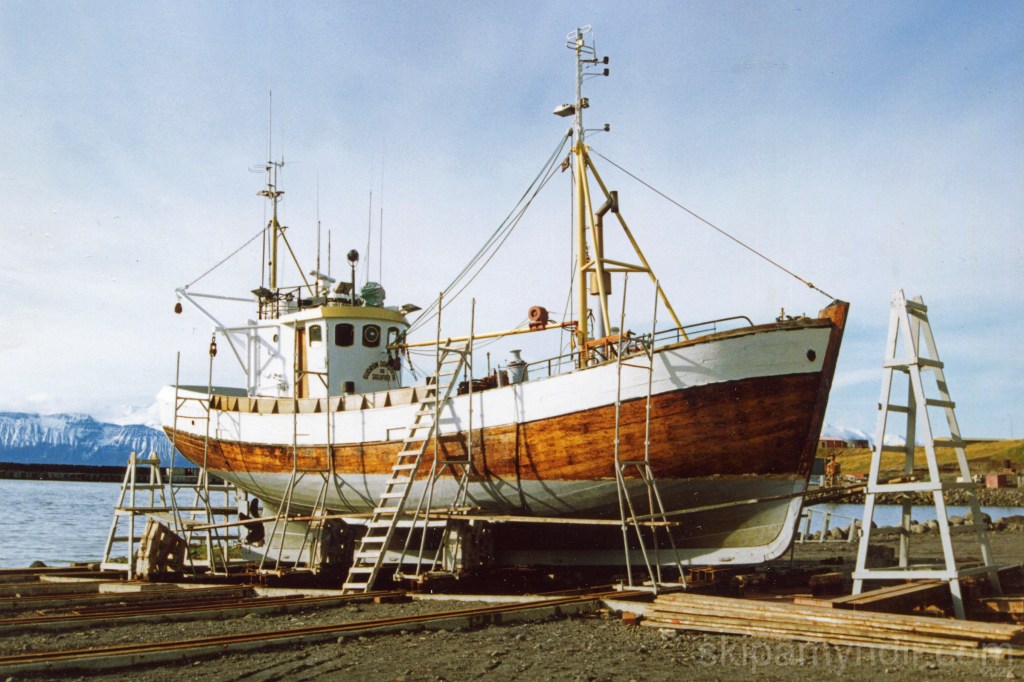 Guðrún Jónsdóttir SI 155 frá Siglufirði er hér í slipp á Húsavík en Pétur Jónasson tók myndina.