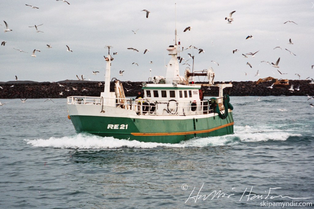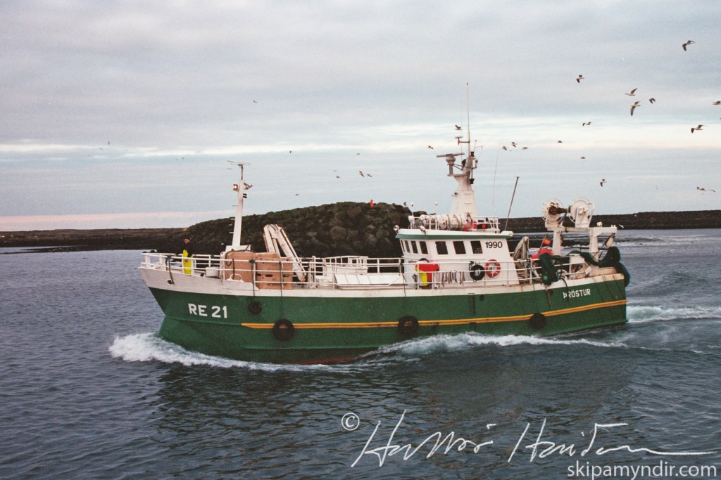 Þröstur RE 21 kemur hér að landi í Grindavík á vetrarvertíðum um árið en þetta nafn bar hann árin 1993- 2008.