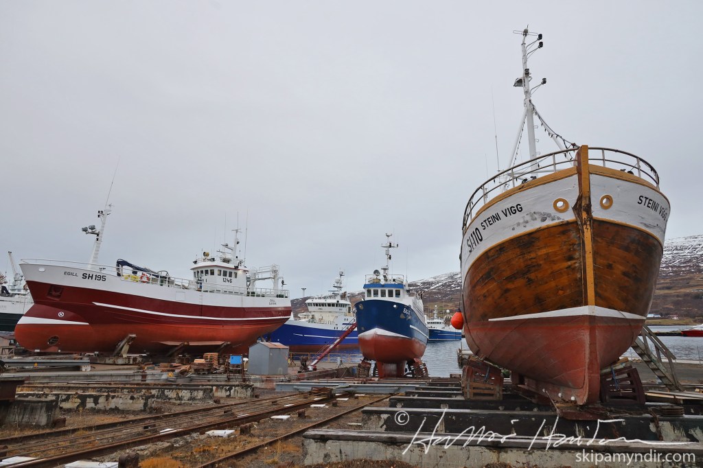 Þeta eru Steini Vigg SI 110, sem smíðaður var í bátasmiðjunni Vör á Akureyri og hét upphaflega Hrönn ÞH 275. Í miðið er Hafborg EA 242 sem smíðuð var á Ísafirði og hét upphaflega Stapavík AK 132 og sá rauði er Egill SH 195 úr Ólafsvík. Hann var smíðaður á Seyðisfirði og hét upphaflega Fylkir NK 102.