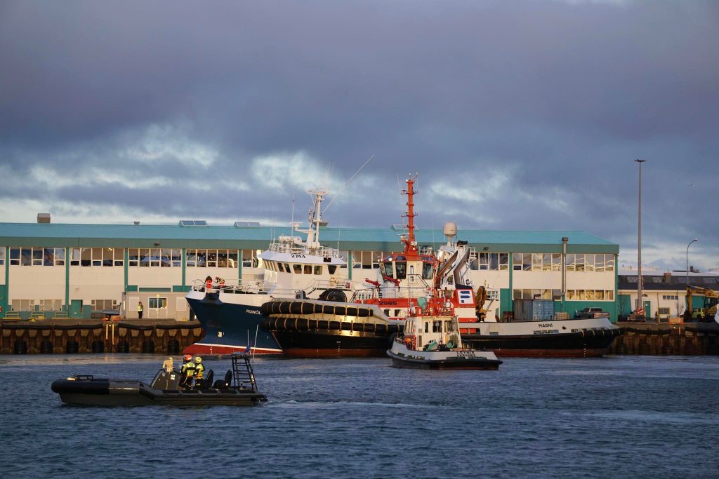 Maggi Jóns tók þessa mynd þegar dráttarbátar Faxaflóahafna komu Runólfi SH 135 að bryggju í Reykjavík í gær.