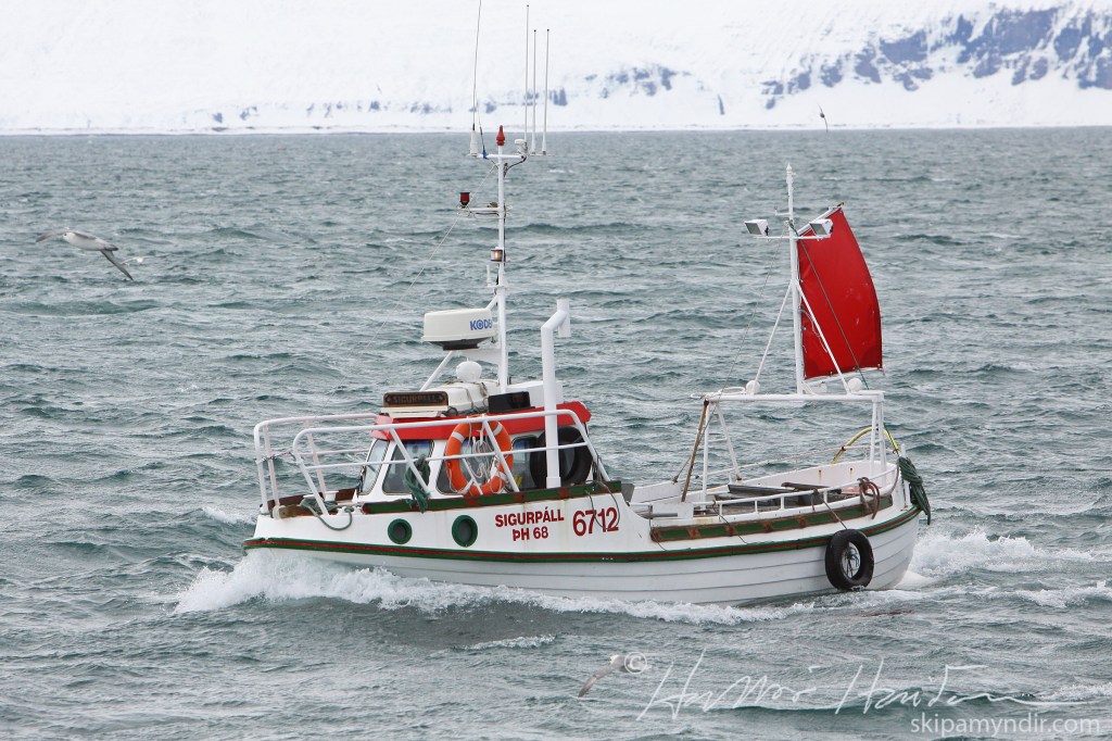Grásleppubáturinn Sigurpáll ÞH 68 frá Húsavík kemur hér úr róðri í aprílmánuði árið 2013.