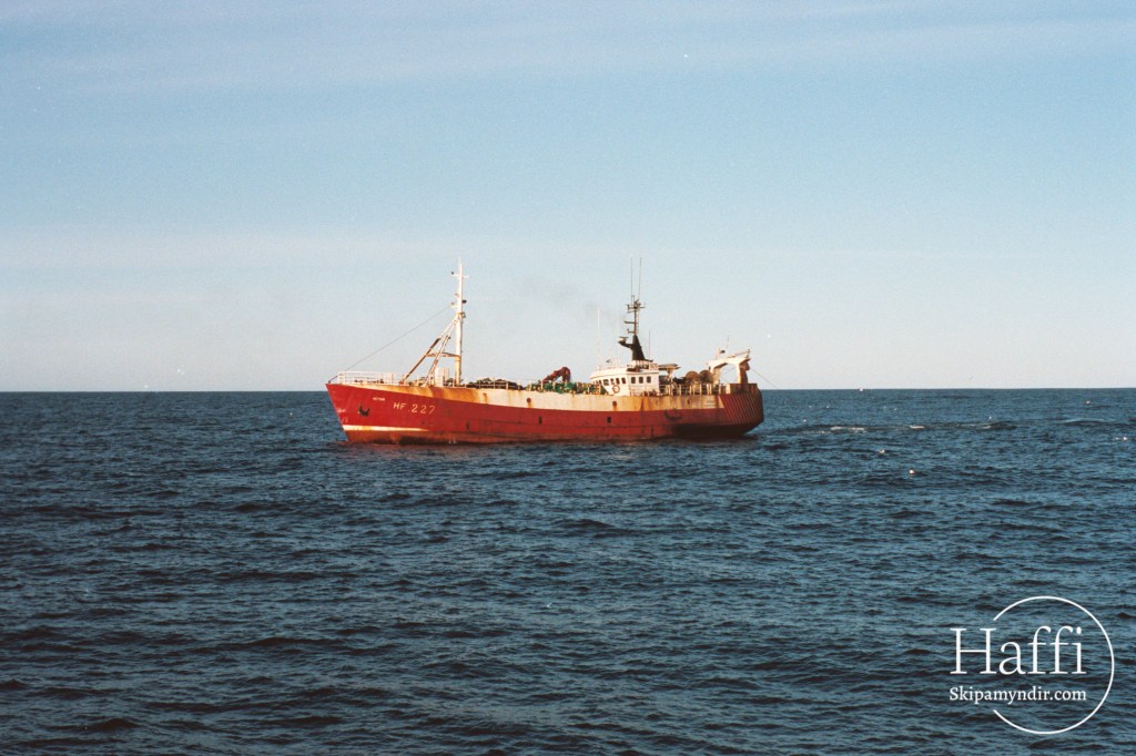 Rækjuskipið Hersir HF 227 er hér á toginu en myndin var tekin á rækjuslóðinni úti fyrir NA-landi í sumarbyrjun 1987.