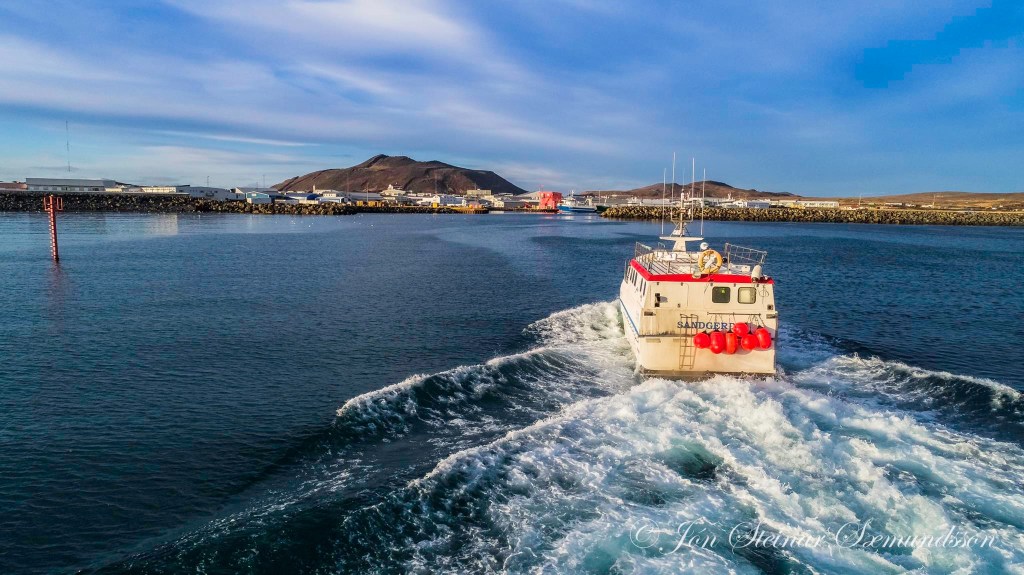 Línubáturinn Hulda GK 17 kemur hér til Grindavíkur úr róðri í gær en það er Blakknes ehf. sem gerir bátinn út.