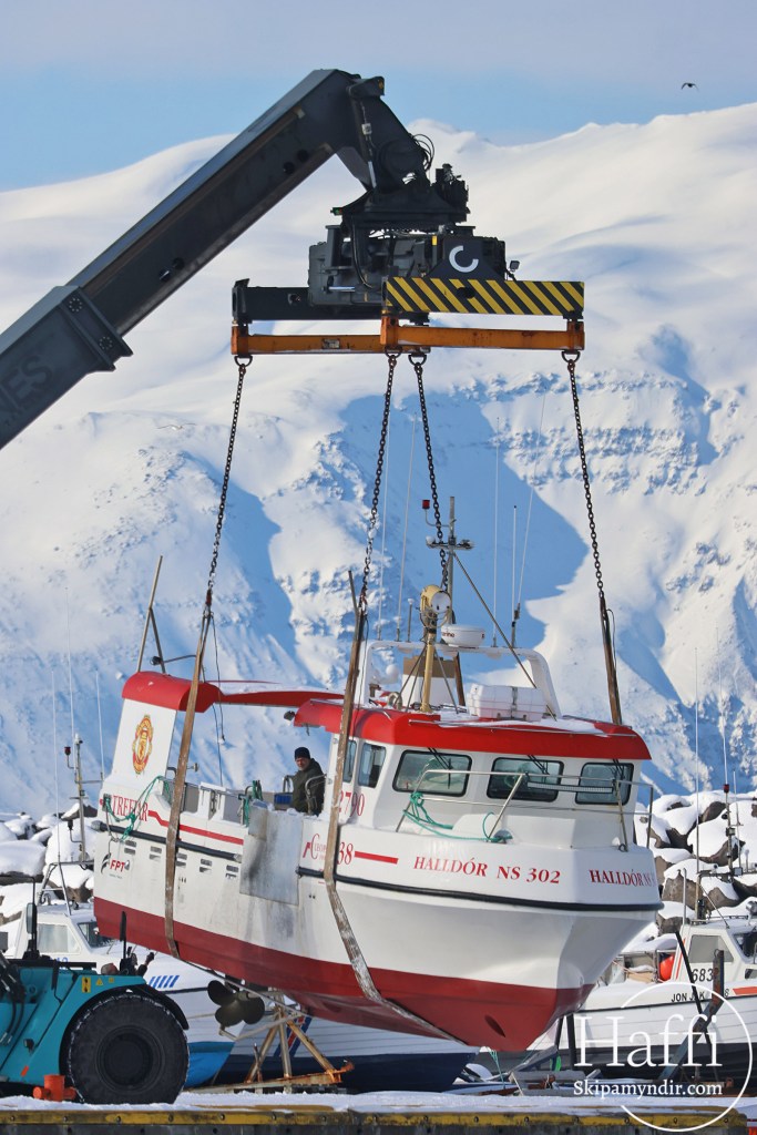 Þá fer grásleppuvertíðin að hefjast og í gær var Halldór NS 302 sjósettur á Húsavík en þar hefur báturinn staðið uppi frá því í haust.