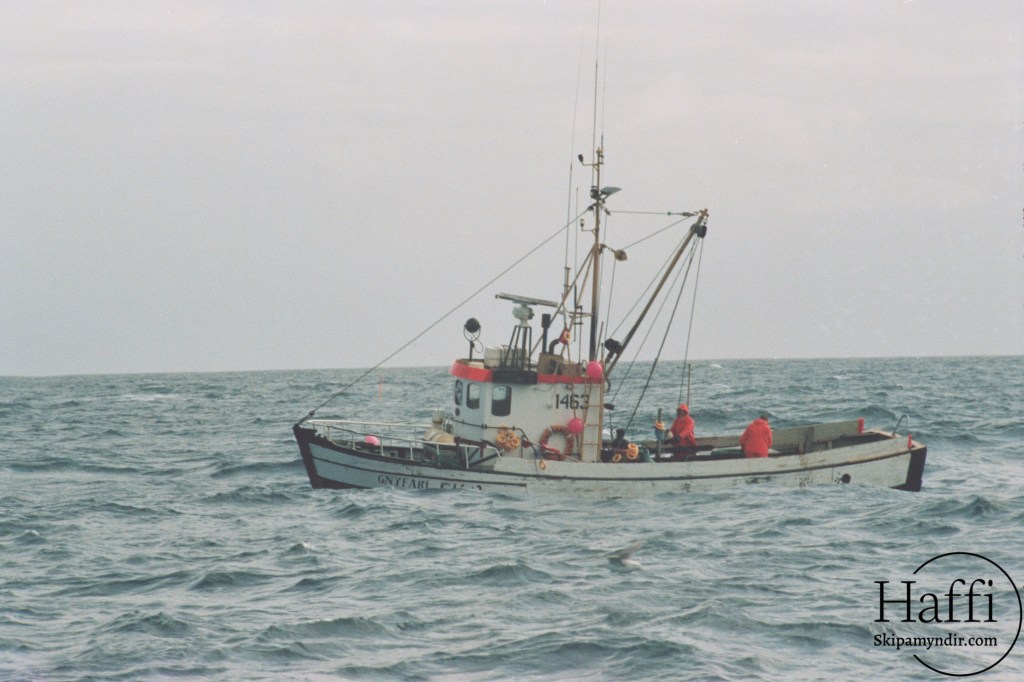 Gnýfari SH 8 frá Grundarfirði er hér að draga netin á Breiðafirði á vetrarvertíð en þaðan var hann gerður út árin 1987-1988.