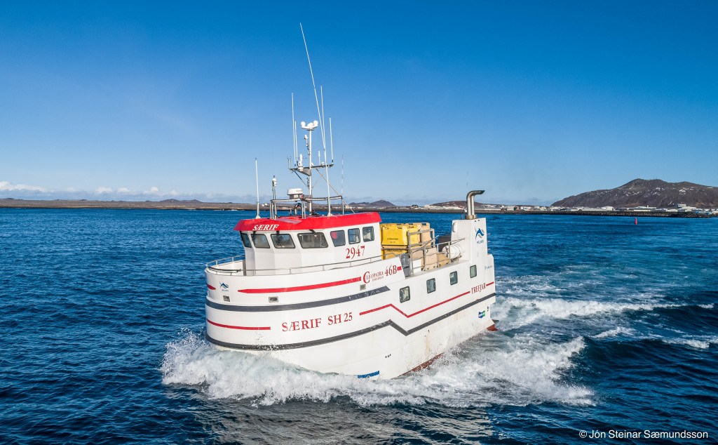 Línubáturinn Særif SH 25 frá Rifi sést á þessum myndum sigla út frá Grindavík í dag.