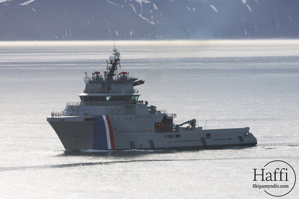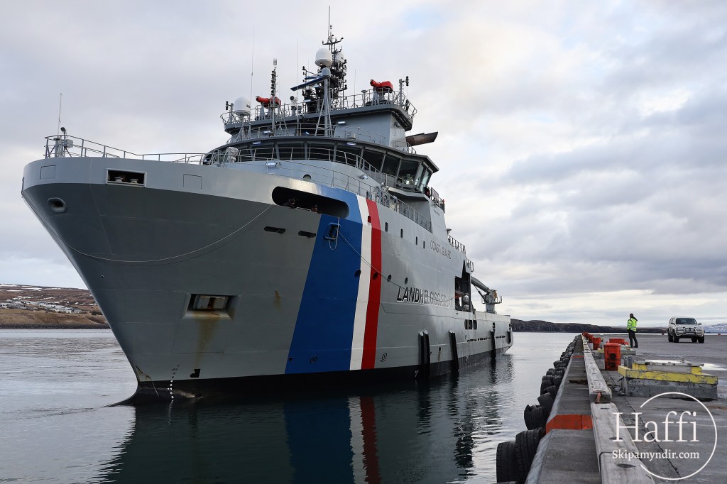 Varðskipið Freyja kom til hafnar á Húsavík nú undir kveld og voru þessar myndir teknar við það tækifæri.