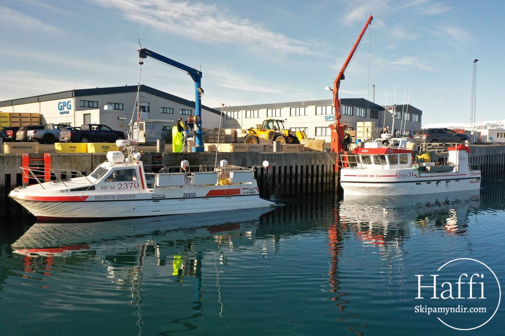 Þegar hafist var handa við að landa úr bátnum í morgun kom að landi, og undir hinn kranann, strandveiðibáturinn Sigrún Hrönn ÞH 136.