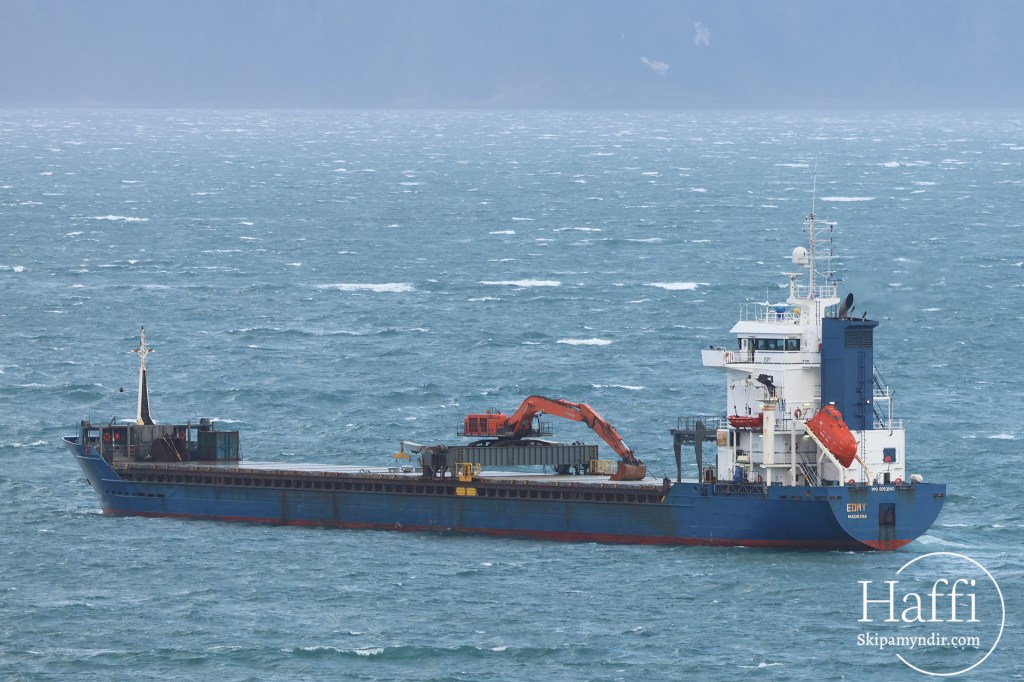 Flutningaskipið Edmy kom inn á Skjálfanda í kvöld eftir rúmlega sex sólahringa siglingur frá Bordeaux í Frakklandi.