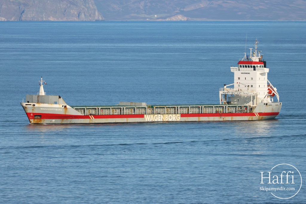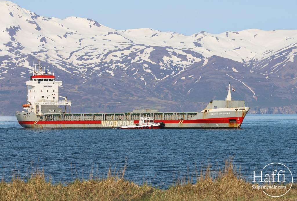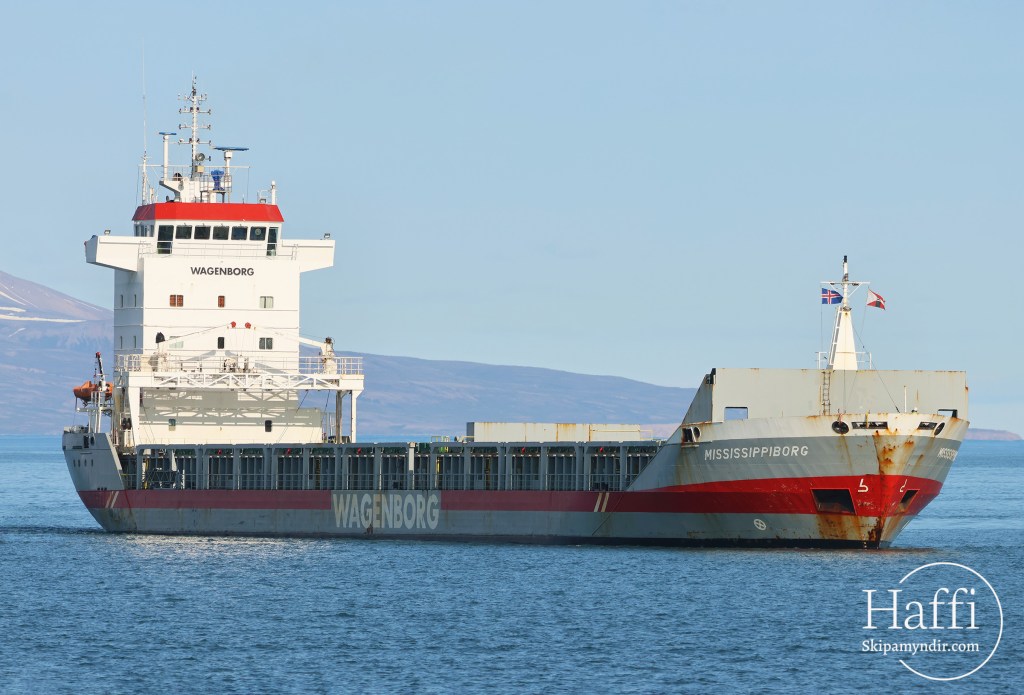 Hollenska flutningaskipið Mississippiborg kom til Húsavíkur í morgunsárið en skipið er með hráefnisfarm fyrir PCC á Bakka.