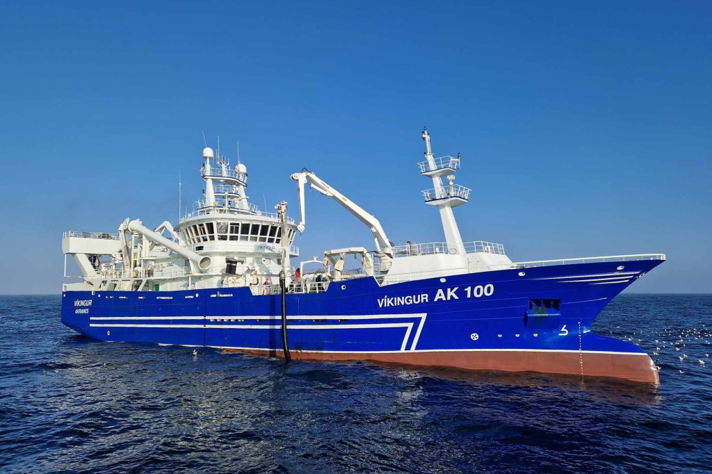 Víkingur AK 100 á makrílmiðunum í vikunni en myndina tók Sigdór Jósefsson um borð í Svan RE 45.