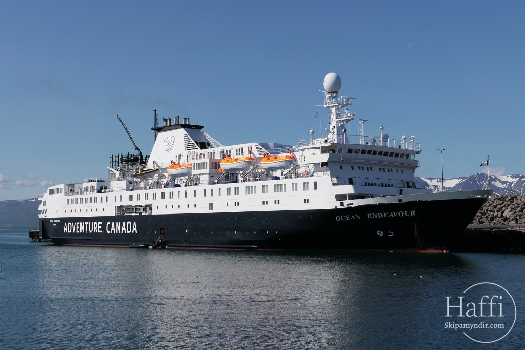 Farþegaskipið Ocean Endavour kom til Húsavíkur í morgun og lagðist að Bökugarðinum.