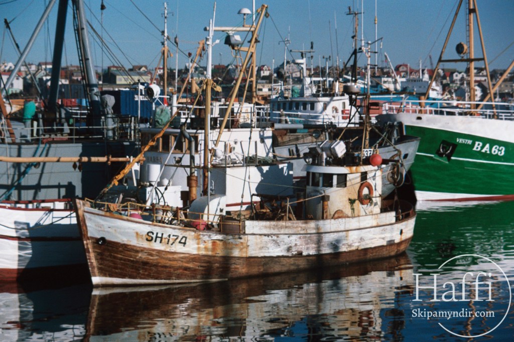 Gulltoppur SH 174, sem hér sést í Hafnarfjarðarhöfn, hét upphaflega Haförn EA 155 og var smíðaður hjá Skipasmíðastöð KEA árið 1961.
