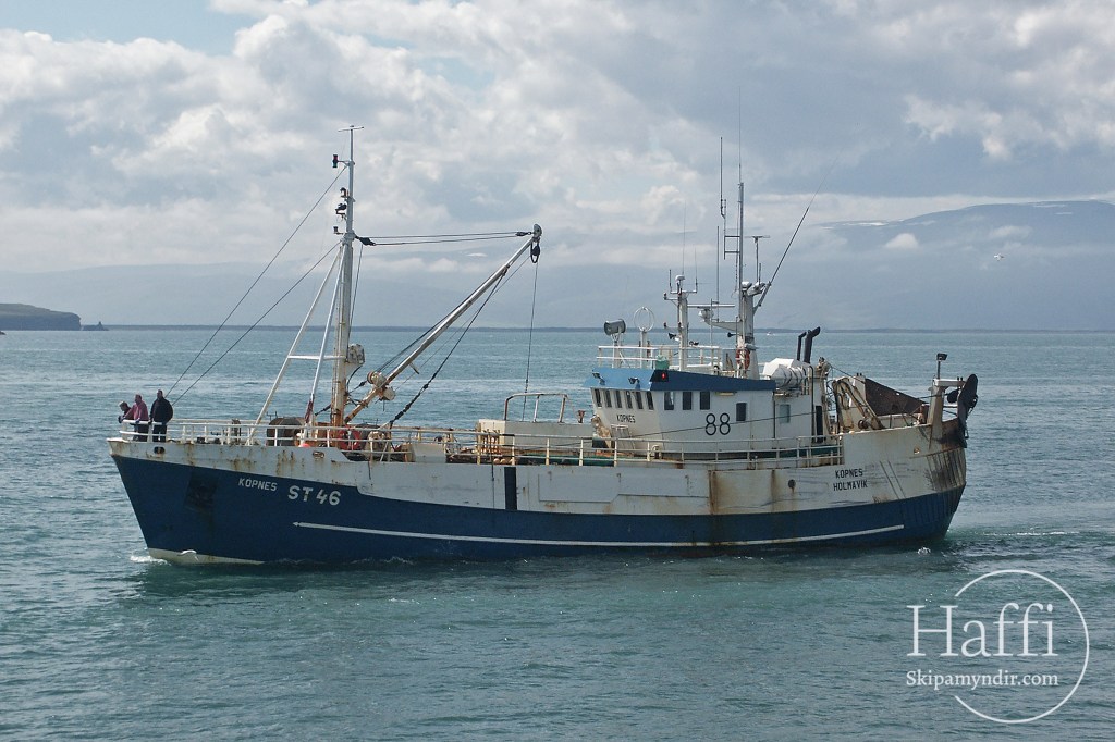 Kópnes ST 46 kemur hér til hafnar á Húsavík þann 15. júlí árið 2003 þeirra erinda að láta gera við rækjutrollið.