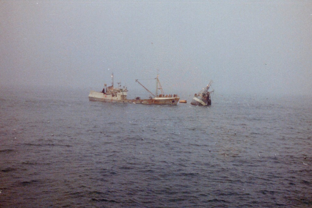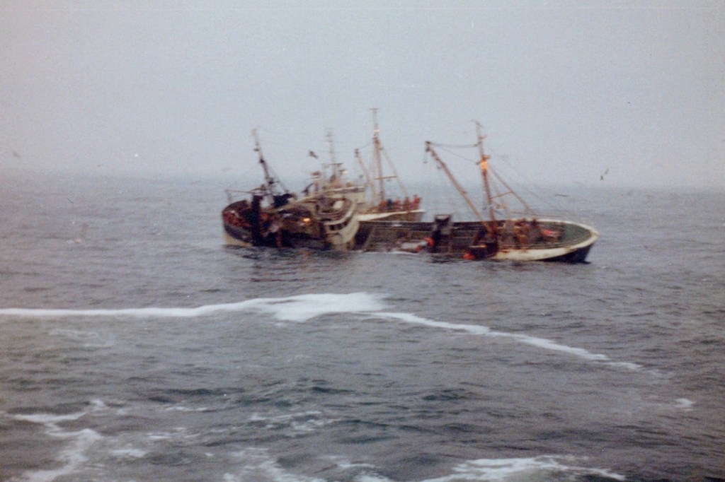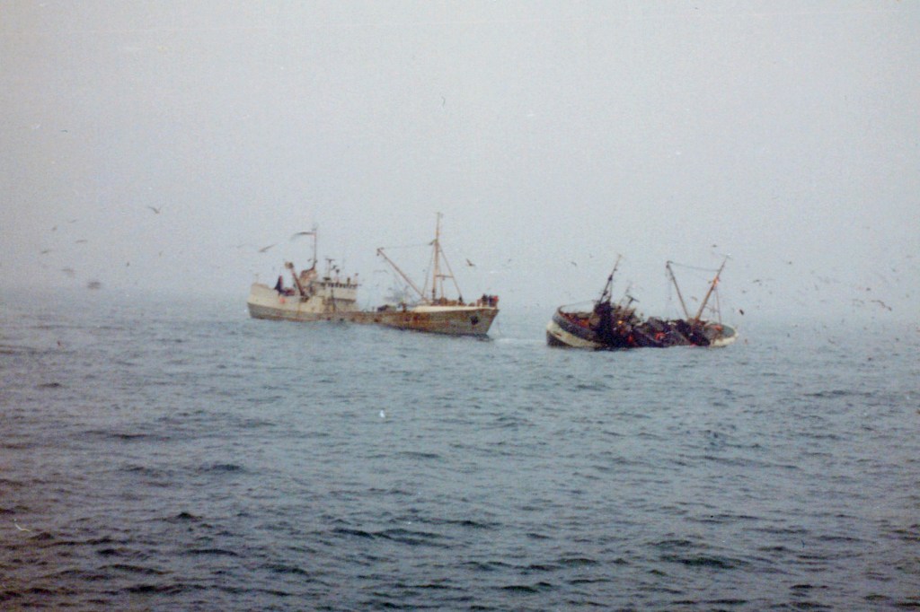 Þarna hafa kallarnir á Ólafi Magnússyni EA 250 lent í einhverju brasi á loðnuveiðum í denn.