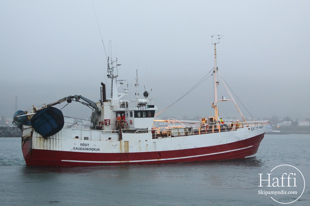 Hér er Röst SK 17 að færa sig á milli garða eftir að gert hafði verið við rækjutrollið við Bökugarðinn.