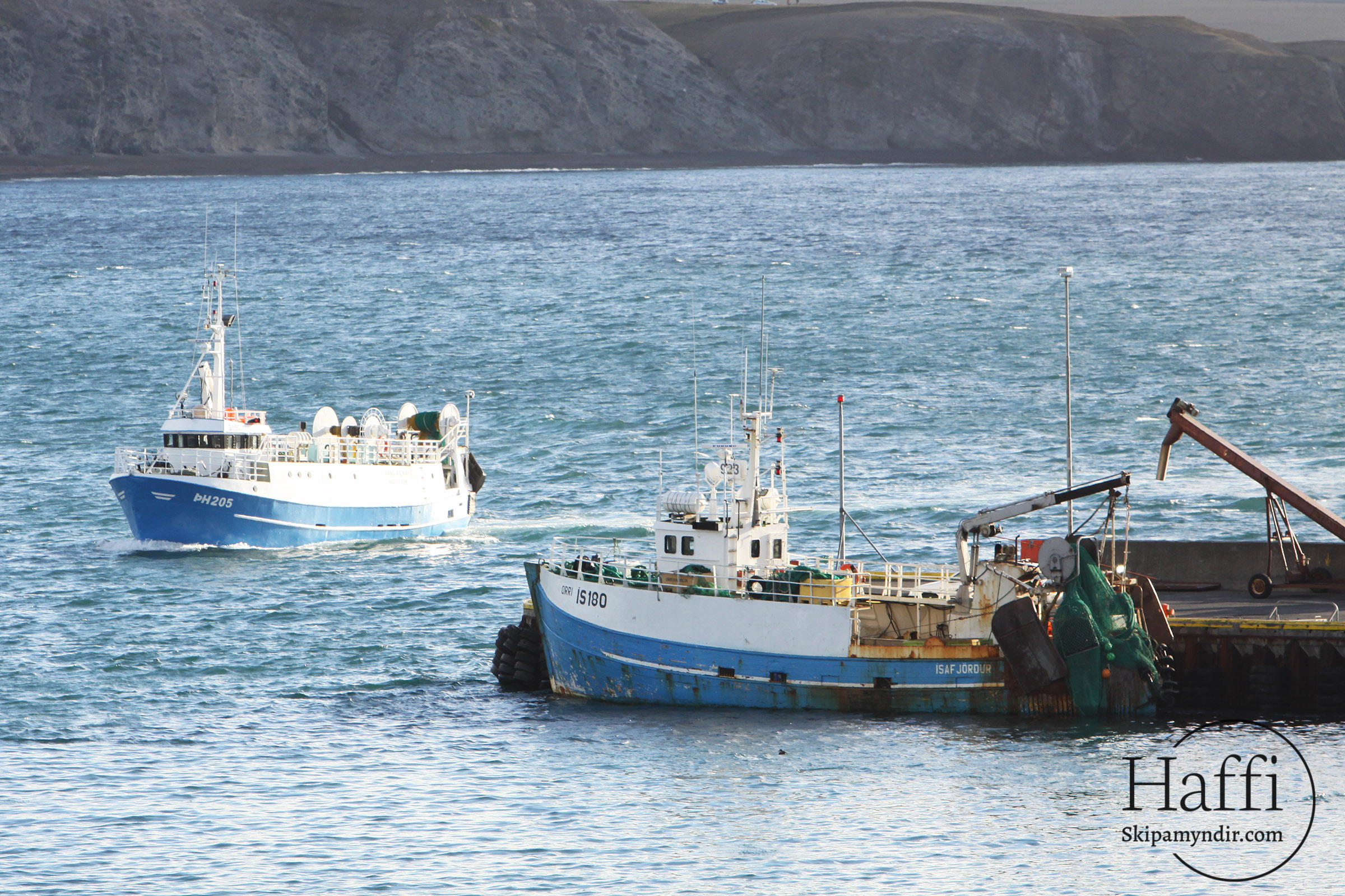 Orri ÍS 180 liggur við Norðurgarðinn og Árni á Eyri ÞH 205 kemur til hafnar.