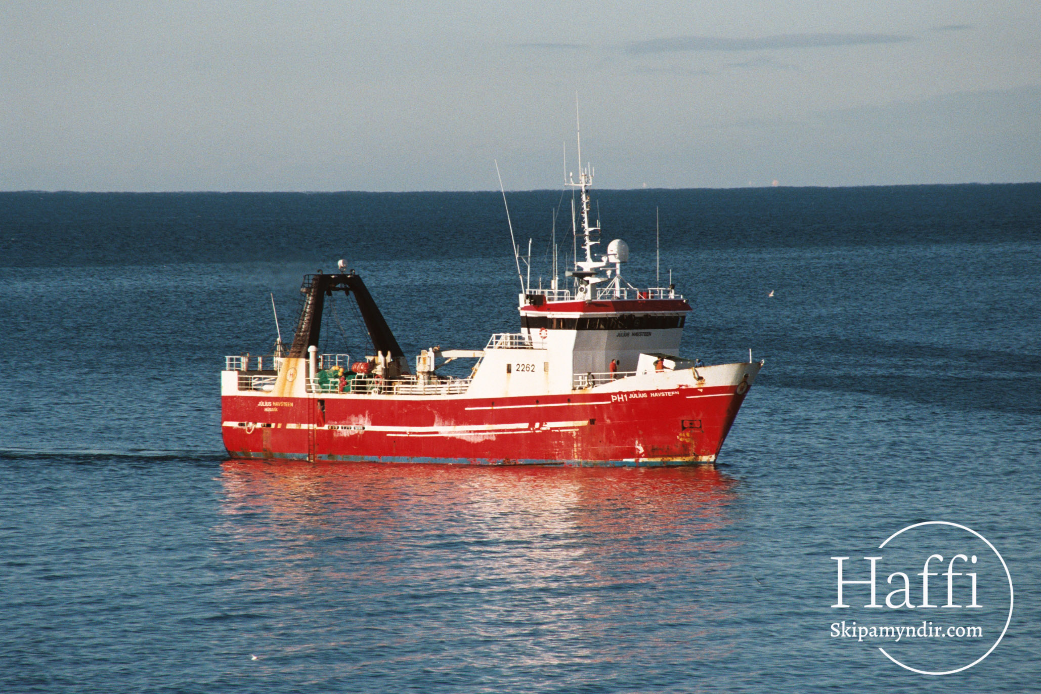Frystitogarinn Júlíus Havsteen ÞH 1 kemur hér til hafnar á Húsavík eftir veiðferð á rækjuslóð.