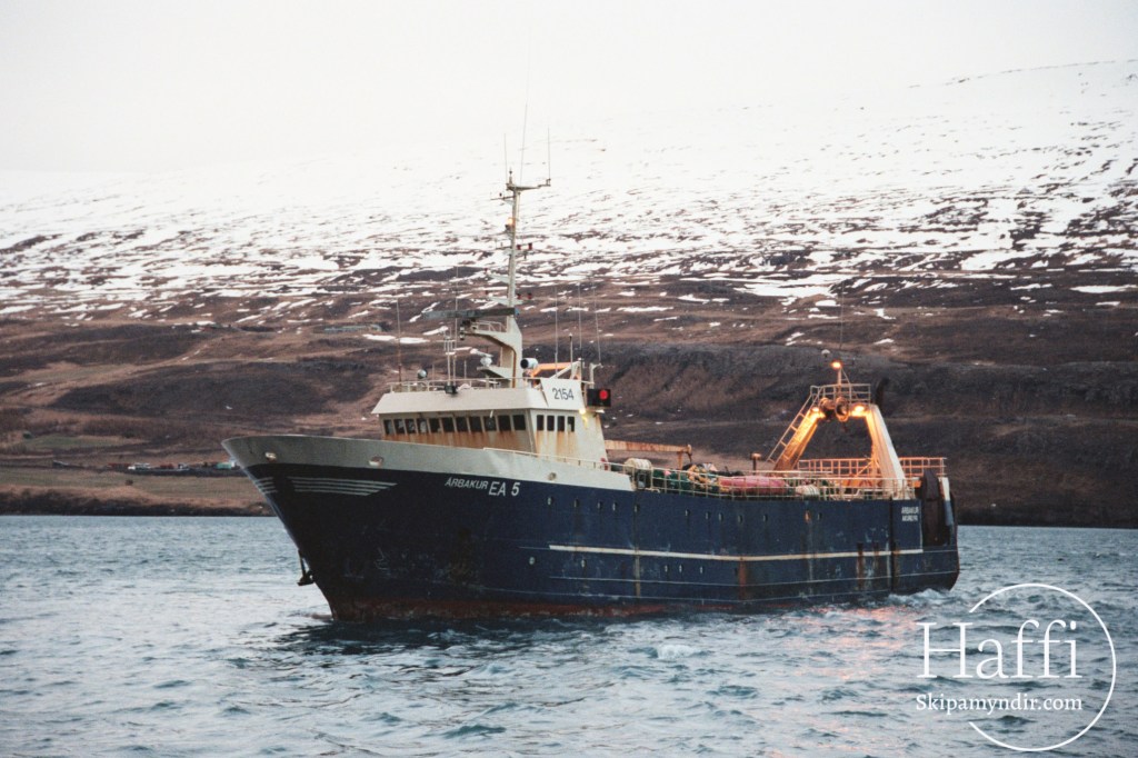 ÚA togarinn Árbakur EA 5 leggur hér upp í veiðiferð frá Akureyri um árið en þetta var sama daginn og Þorsteinn EA 810 kom úr lengingu frá Póllandi.