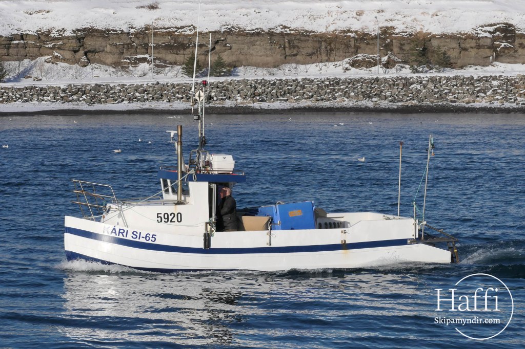 Um bátinn má lesa hér en myndin var tekin um miðjan dag í dag þegar Kári SI 65 lagði upp í siglingu til nýrrar heimahafnar á Siglufirði.