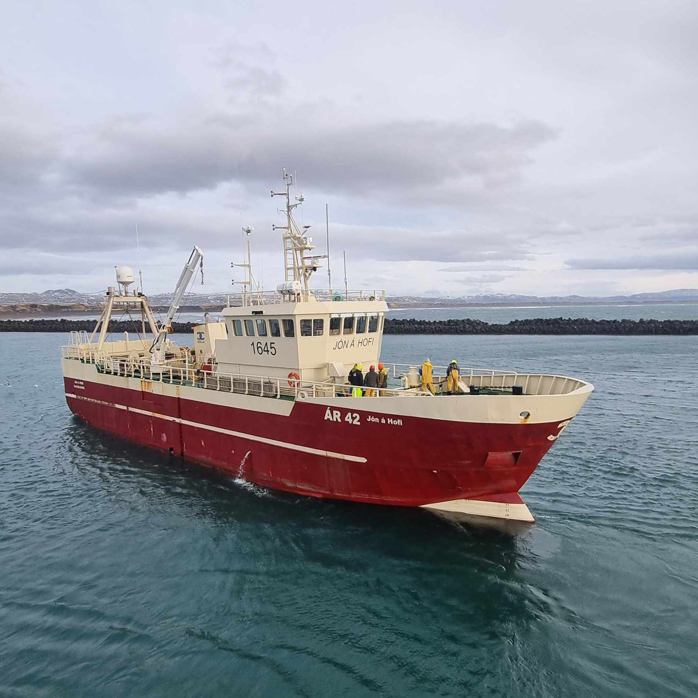 Jón á Hofi ÁR 42 er 38,99 metrar að lengd, 8,1 metra breiður og mælist 274 brl./497 BT að stærð.