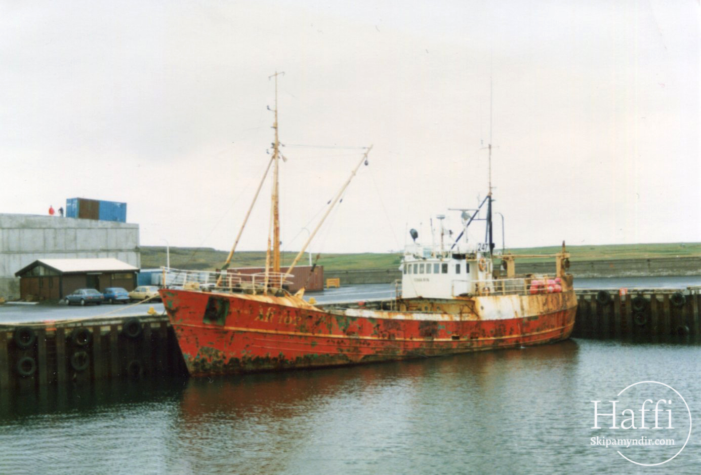 Stakkavík ÁR 107 liggur hér við bryggju í Hafnarfirði um árið en upphaflega og lengst af hét báturinn Hugrún ÍS 7.