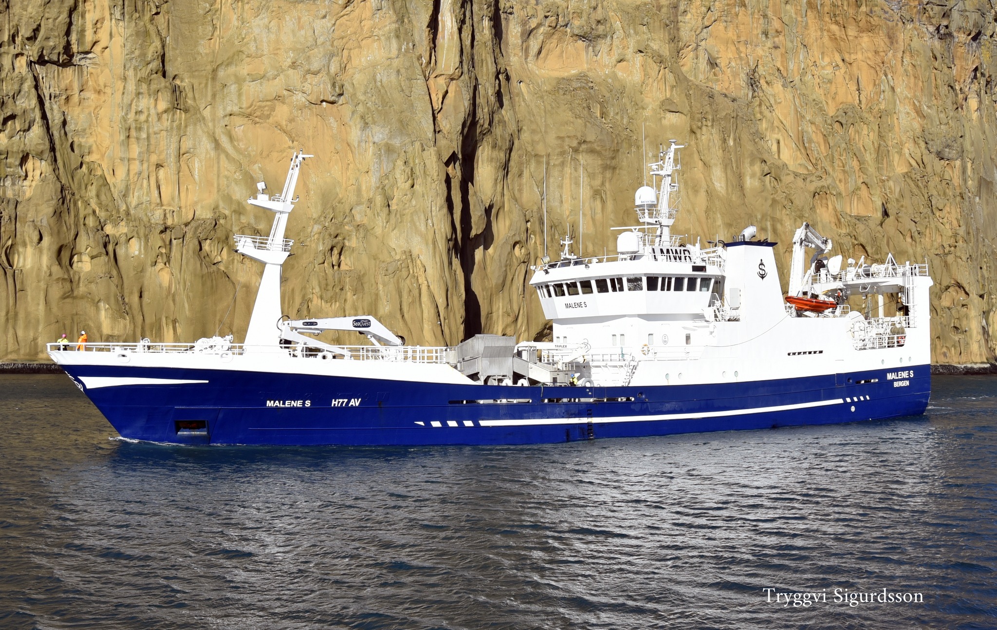 Norska uppsjávarveiðiskipið Malene S S 77-AV kom til löndunar Vestmannaeyjum í vikunni með 1500 tonn af kolmunna.