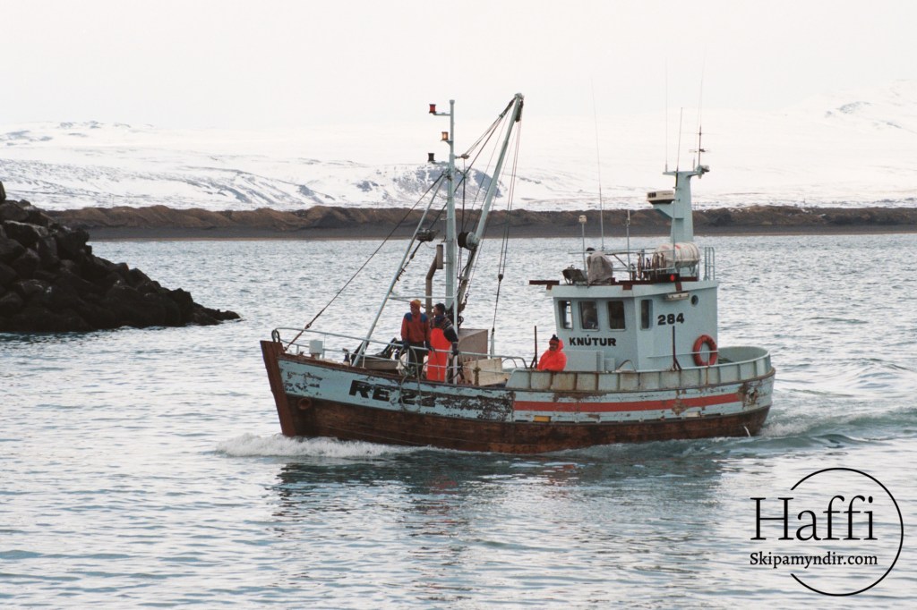 Netabáturinn Knútur RE 22 kemur hér til hafnar í Þorlákshöfn á vetrarvertíð í lok síðustu aldar.