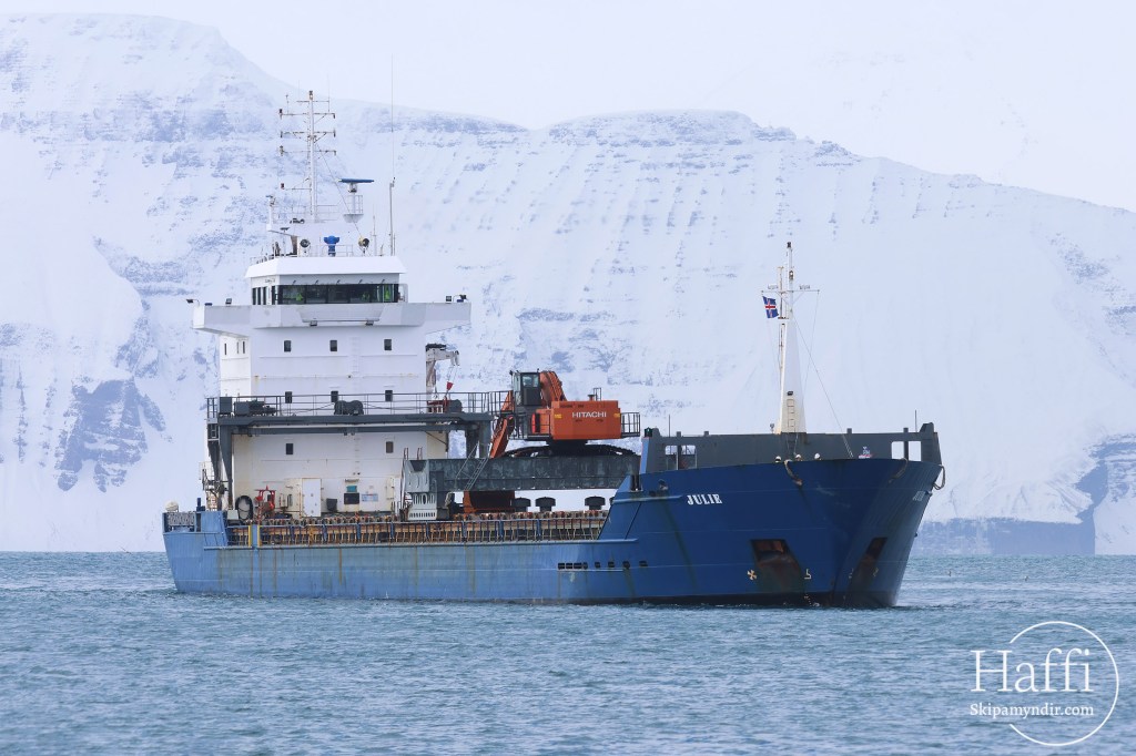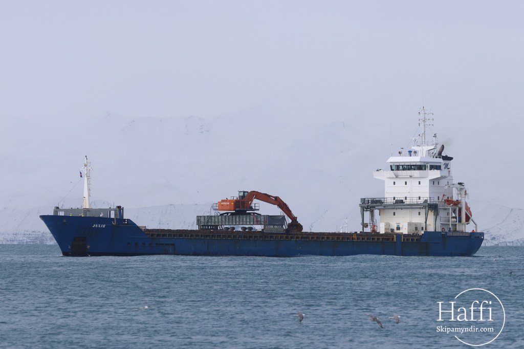 Flutningaskipið Julie kom til Húsavíkur í gær og lagðist að Bökugarði þar sem skipað er upp hráefnisfami fyrir kíslilver PCC á Bakka.