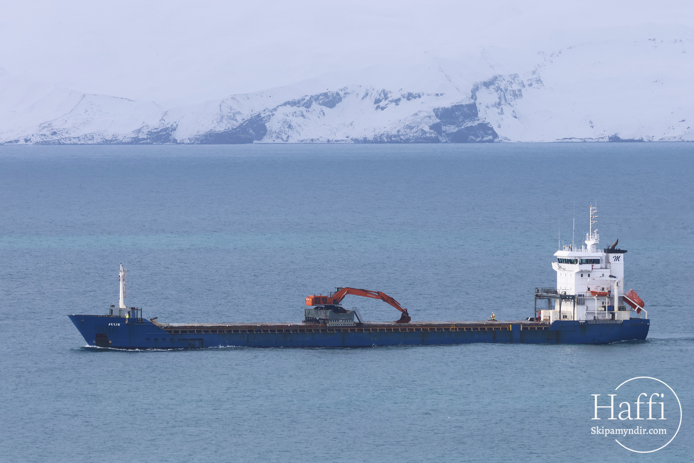 Flutningaskipið Julie kom til Húsavíkur í gær og lagðist að Bökugarði þar sem skipað er upp hráefnisfami fyrir kíslilver PCC á Bakka.