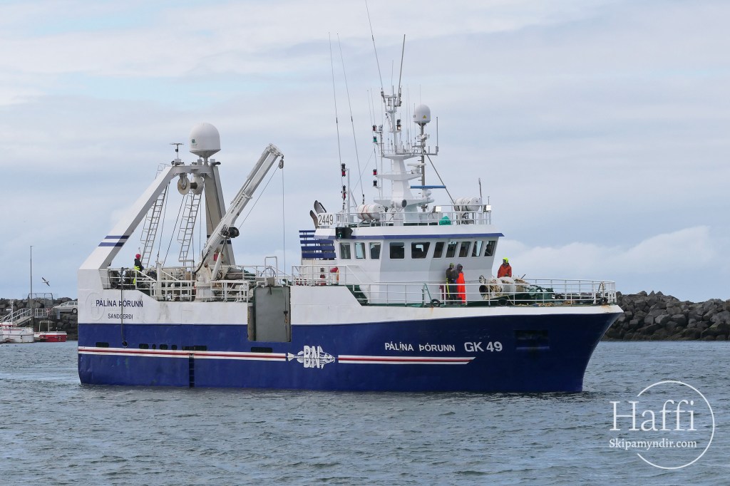 Togskipið Pálína Þórunn GK kom að landi í Sandgerði í morgun og ekki annað að sjá en að vel hafi fiskast.