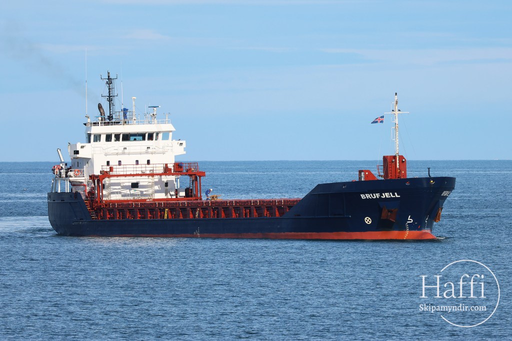 Norska flutningaskipið Brufjell kom til Húsavíkur í morgun og lagðist að Bökugarðinum þar sem skipað er upp hráefnisfarmi fyrir kísilver PCC á Bakka.