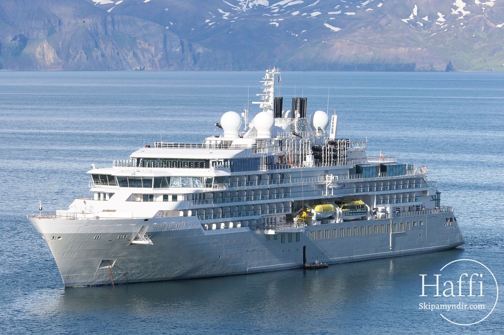 Skemmtiferðaskipið Silver Endeavour kom í morgun inn á Skjálfanda og lagðist við stjóra fram undan Húsavíkurhöfðanum.