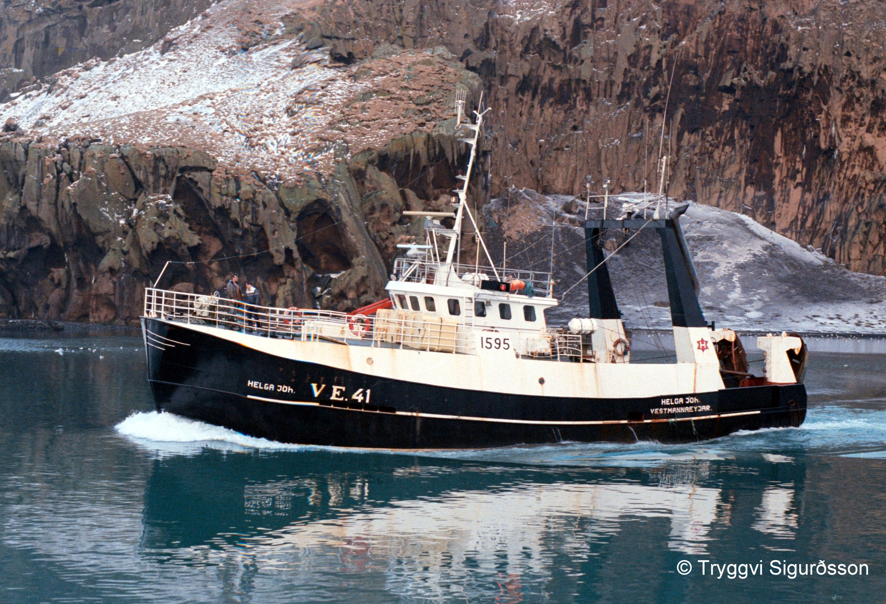 Helga Jóh VE 41 kemur hér til hafnar í Vestmannaeyjum um árið en þangað var báturinn keyptur frá Færeyjum árið 1981.