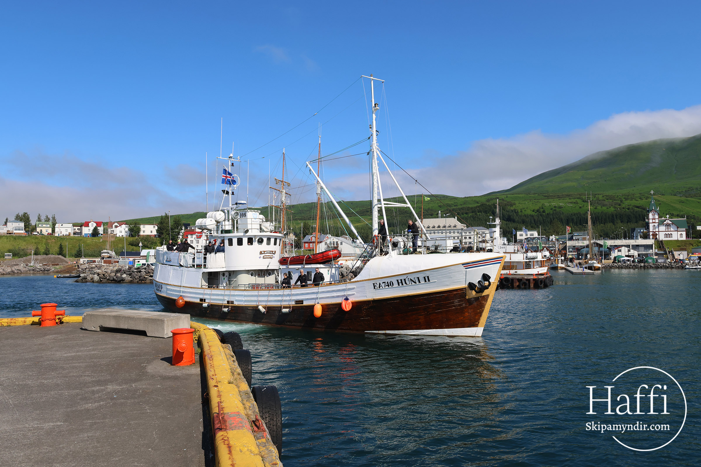 Þetta voru skipverjar á Húna II sem sigldu frá Akureyri til Húsavíkur til að taka þátt í bæjargátíðinni.