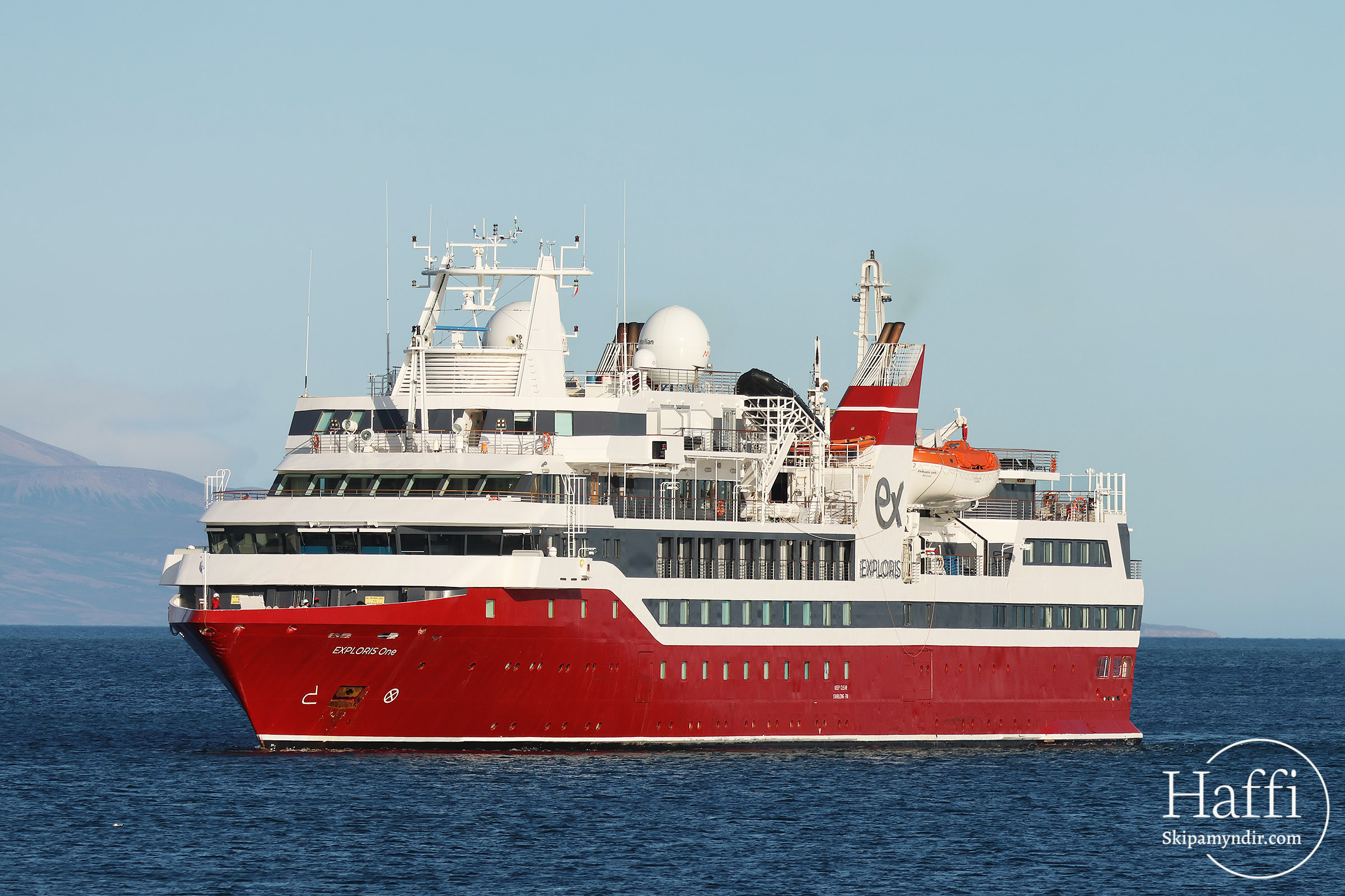 Skemmtiferðaskipið Exploris One kom til Húsavíkur í morgun og lagðist að Bökugarði.
