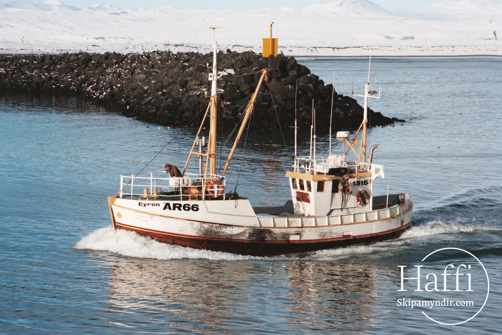 Eyrún ÁR 66 kemur hér til hafnar í Þorlákshöfn um árið en þaðan gerði Erlingur Ævarr Jónsson hana út.