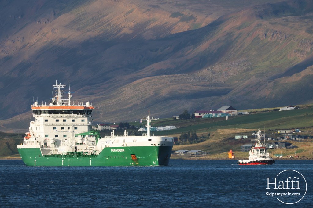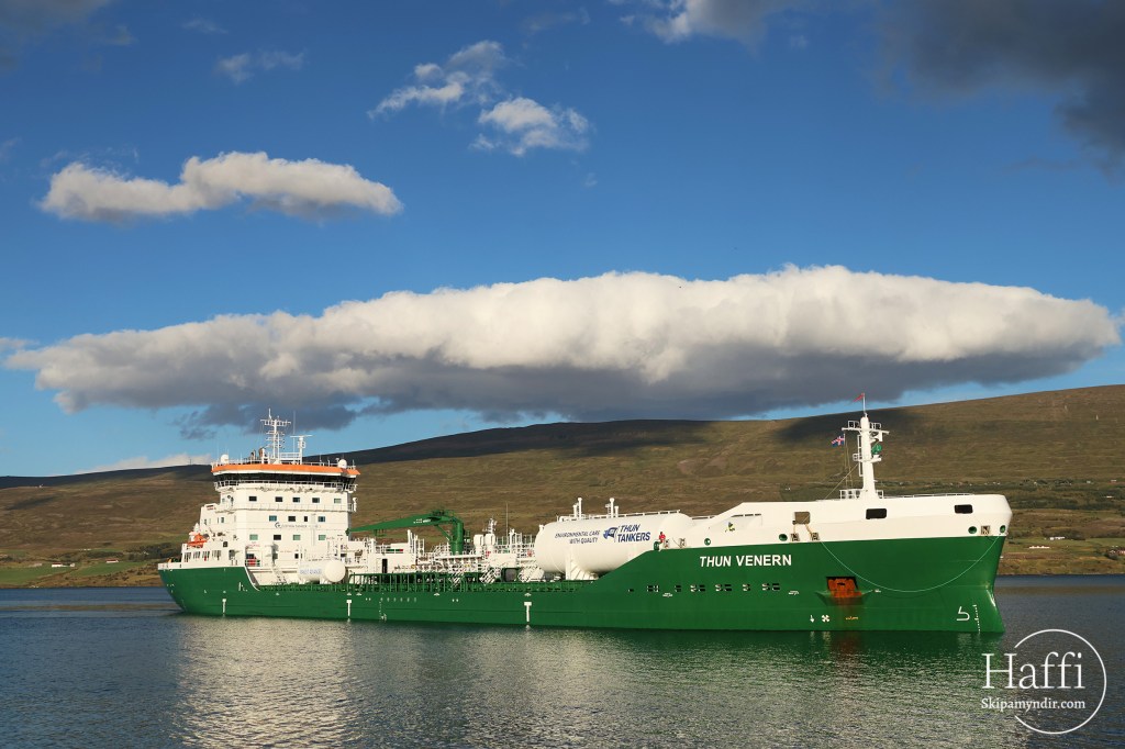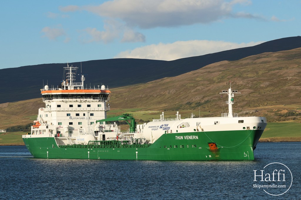 Tankflutningaskipið Thun Venren kom með eldsneytisfarm í Krossanes í gær og voru þessar myndir teknar þá.