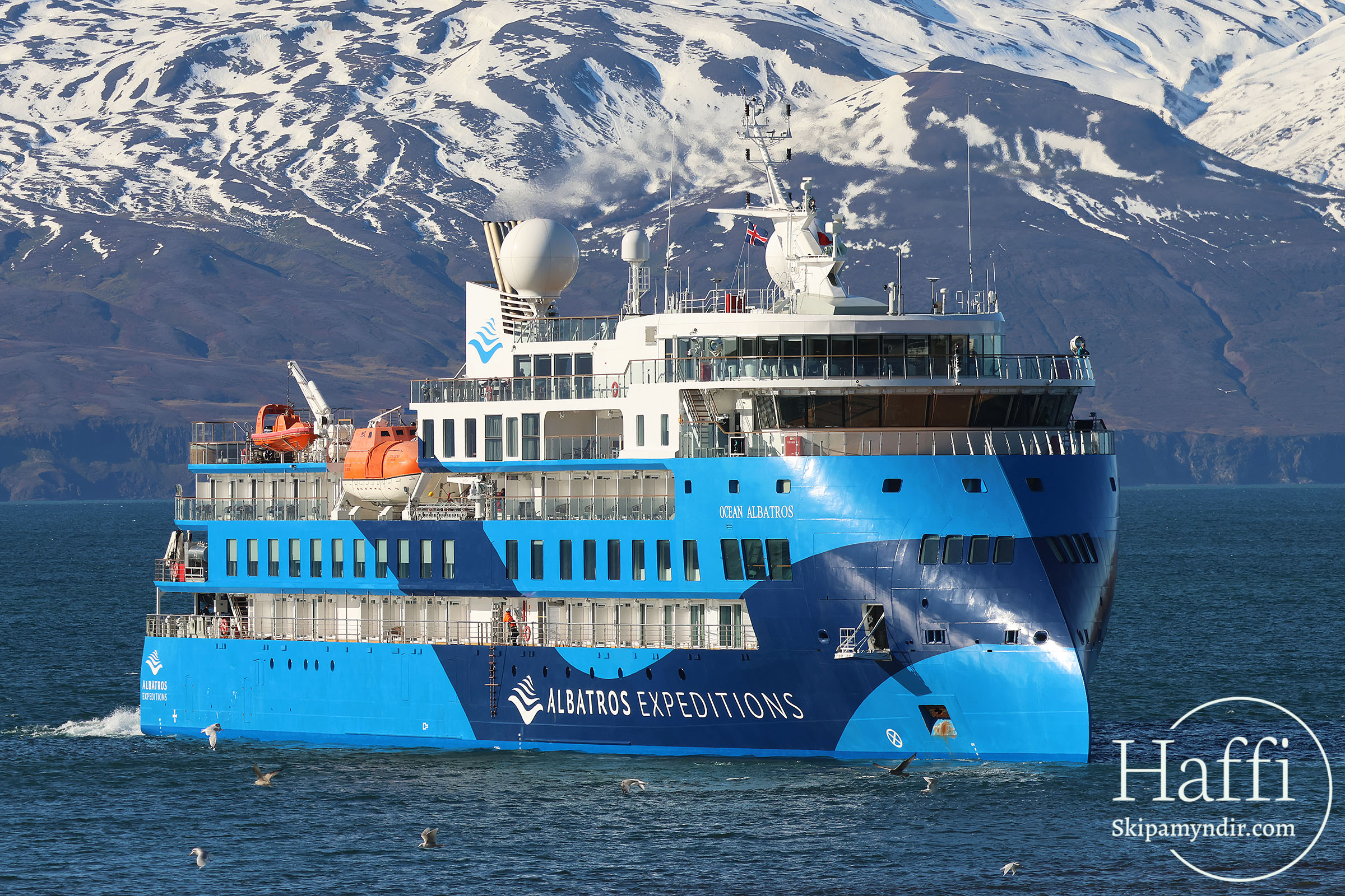 Skemmtiferðaskipið Ocean Albatros kom til Húsavíkur snemma í morgun og stoppaði til hádegis.