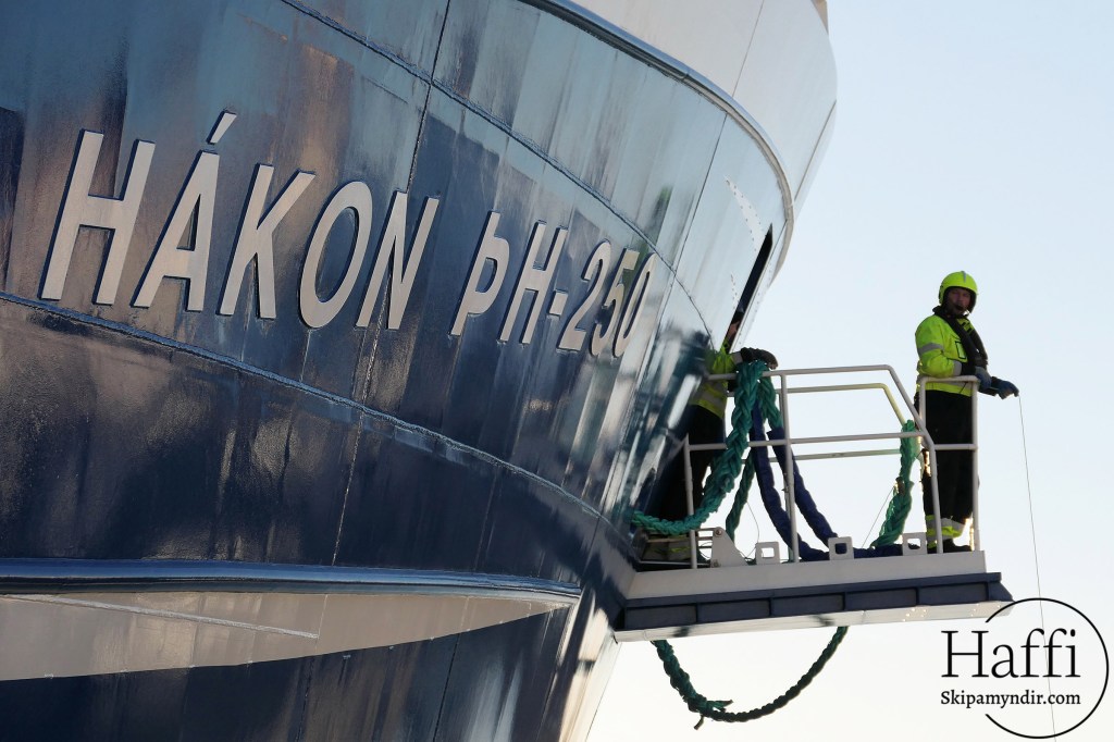 Kallarnir á nýja Hákoni ÞH 250 voru klárir með endana þegar skipið kom að landi í Reykjavík sl. sunnudagsmorgun.