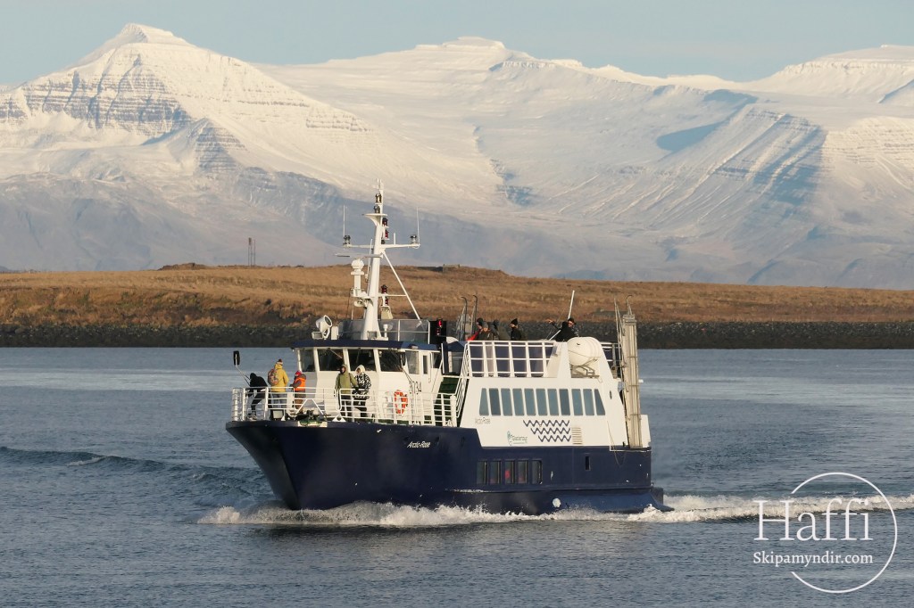Hvalaskoðunarbátur Sea Trip ehf, Artic Rose, kemur hér til hafnar í Reykjavík sl. laugardag.