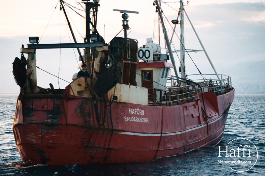Hér lætur Haförn SK 17 úr höfn á Húsavík um ári eftir að hafa legið af sér norðanbrælu.