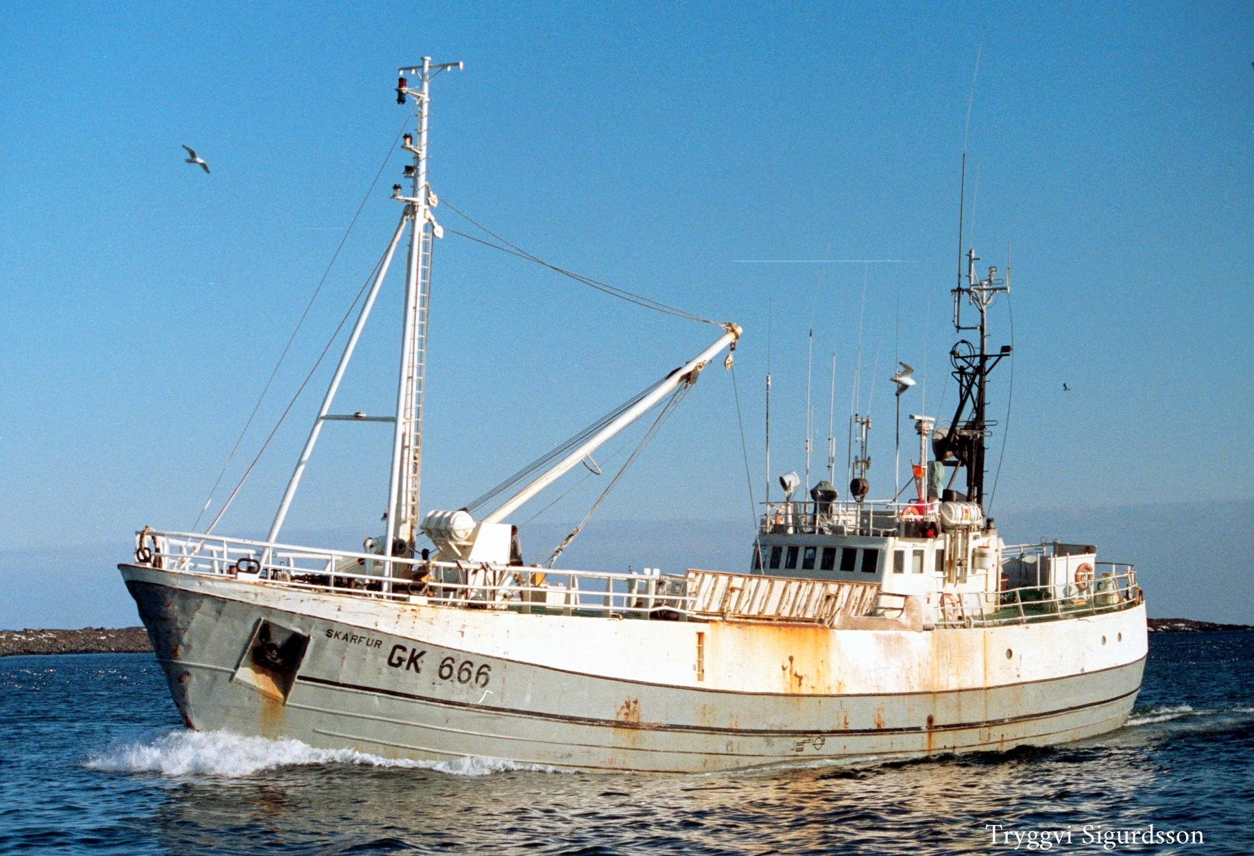 Skarfur GK 666 kemur hér til hafnar í Grindavík um árið en báturinn var einn átján systurbáta sem smíðaðir voru fyrir Íslendinga í Boizenburg í Austur- Þýskalandi.